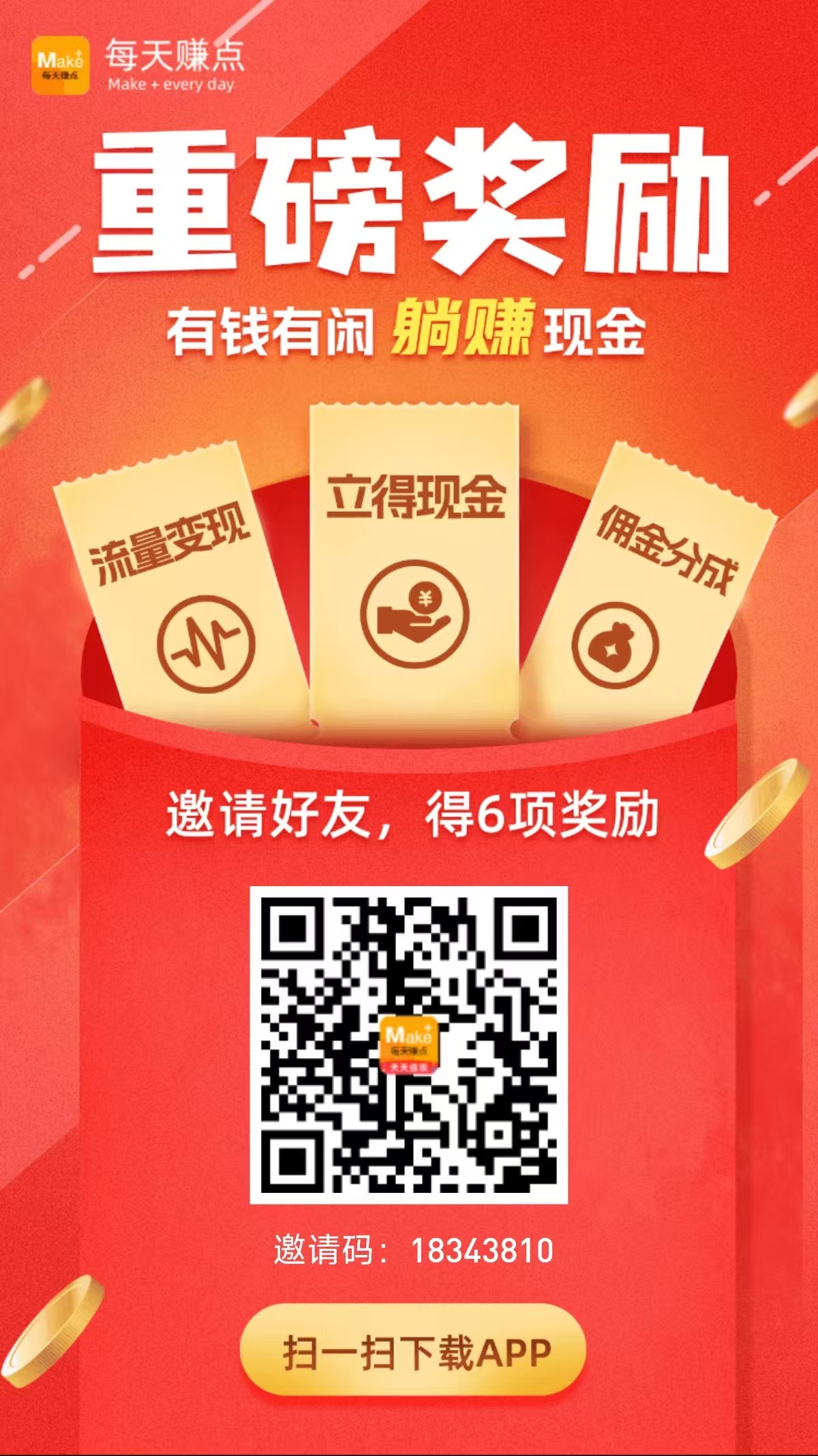 用户可以通过完成各种任务,如下载注册任务、电商任务、试玩任务等,来获得奖励。此外,用户还可以通过短视频流量变现,主要面向抖音、快手等短视频平台用户,通过代发视频、推广短剧/小说、小程序引流、CPA拉新等方式帮助普通人实现“零门槛副业赚钱”,扫描下方二维码即可下载注册。